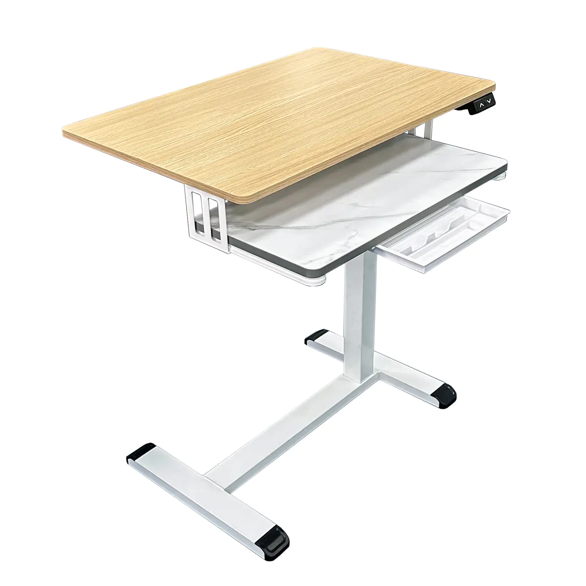 Conas a chuidíonn an ghné coigeartaithe airde dé-cnaipe den deasc RXD1-1-2RR le húsáideoirí teacht ar a staidiúir oibre is fearr?